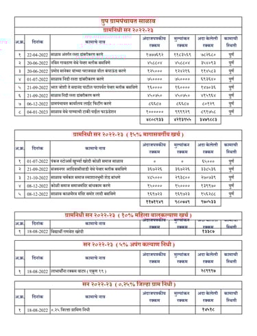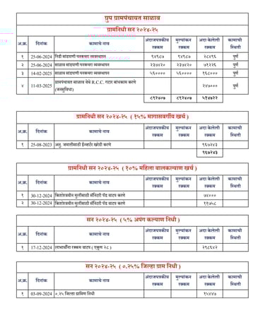 मागील तीन वर्षांत साळाव ग्रामपंचायतीने हाती घेतलेल्या विकास कामांचा सविस्तर लेखाजोखा या अहवालात सादर केला आहे. हा अहवाल साळाव गावातील प्रत्येक नागरिकाप्रती असलेल्या आमच्या पारदर्शकतेच्या आणि जबाबदारीच्या बांधिलकीचा पुरावा आहे. आमच्या सामूहिक प्रयत्नांतून साध्य झालेल्या प्रगतीचा आणि साळावच्या उज्वल भविष्यासाठी आखलेल्या पुढील दिशांचा हा प्रवास पाहण्यासाठी, कृपया खालील अहवाल वाचा.